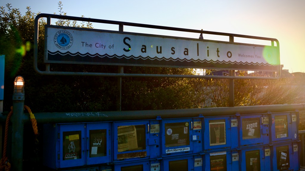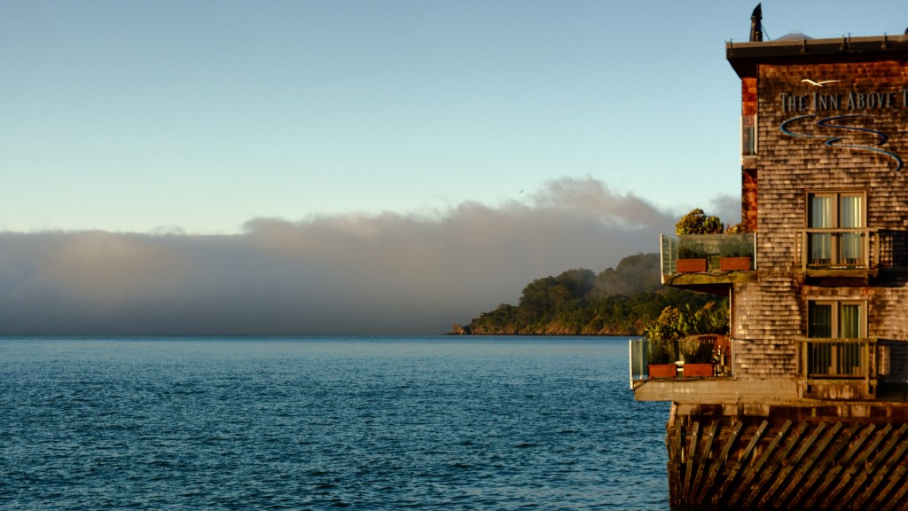 It was sunny in Sausalito with a low fog snaking through the Golden Gate and obscuring the City skyline.