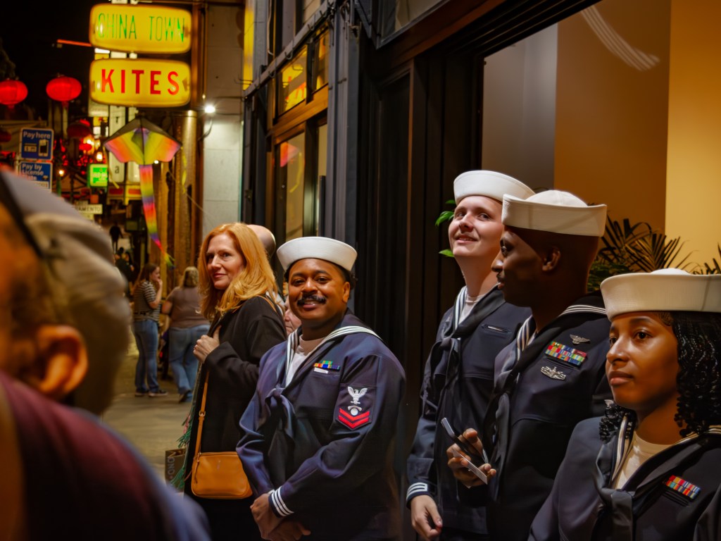 This Fleet Week image is among my favorites. Shot in San Francisco’s Chinatown, it captures a diverse group of sailors enjoying a dragon parade and a Marine Corps brass band.
